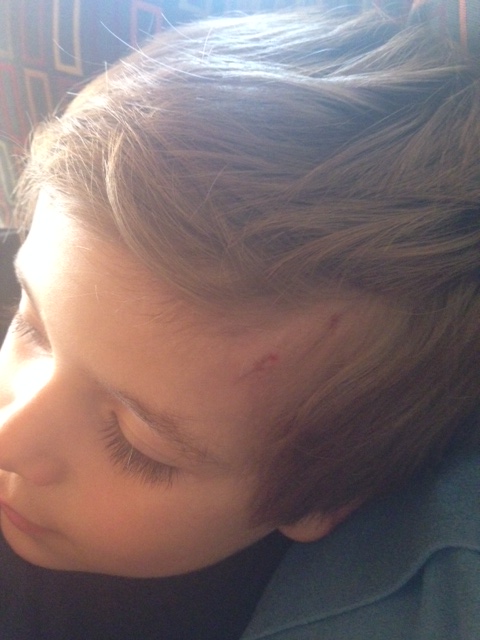This was not his first head to floor duel, as an infant he rolled off the bed and landed on his head (this was my first official freak out as a parent), last year he fell off a chair at the kitchen counter and landed on his head (the sound of a head cracking on the tile floor was by far was the worst sound I have ever heard), but this was the first time I have had my wounded child delivered to my doorstep.