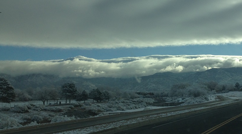 It was a rare morning commute, when all three of us, Azul, my husband and I were traveling together. Usually we say our good-byes in the garage and go our separate ways, regrouping in the evening. Like most commutes, Azul and I were as chatty as ever, I’m sure ruining my husband’s normally quiet drive. It had lightly snowed overnight and was a mostly cloudy morning. While driving we had a perfect view of the Sandia mountains east of the city.