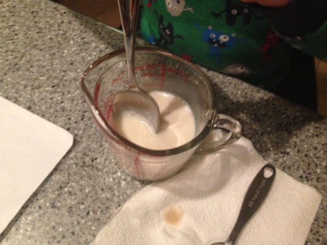Step #2 – Stir together the milk, sugar and vanilla. Azul loves the responsibility of stirring and one less job for me.