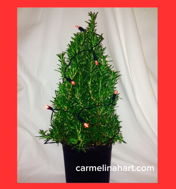 Oh, one more thing. Does this count as decorating? I picked up a rosemary bush shaped like a Christmas tree and put red star lights on it. Oh, please help me!