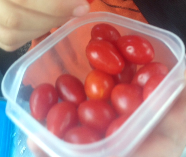 “See,” he said holding up a cherry tomato with a small bite off the top. He proceeded to put the tomato against his puckered lips and suck the juice out while squeezing it, then he popped the whole thing in his mouth and ate it.