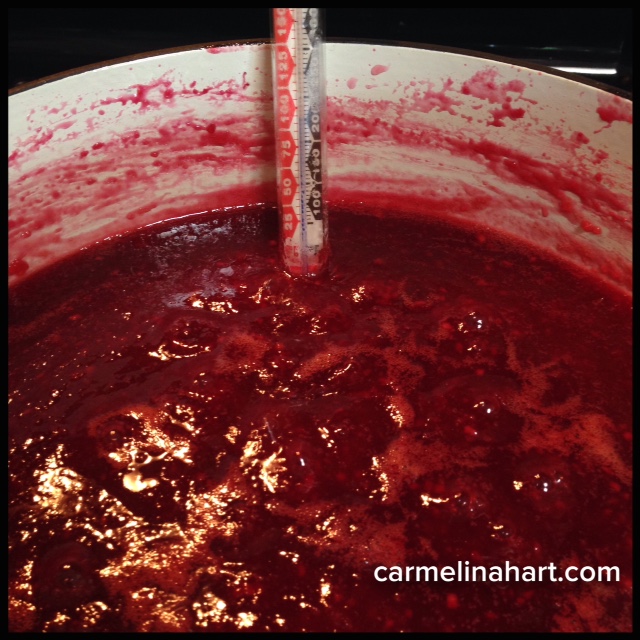 Step 7 – Cook to 220°, this is hot enough for the jam to set. Then turn off the burner and begin to ladle “the reason you are the best mom ever” concoction into the jars. Leave 1/4 to 1/2 inch of head space, tighten the lids, place the jars on their heads, and let them cool. There is no need to boil the jars, the heat from the jam will help the lids seal.