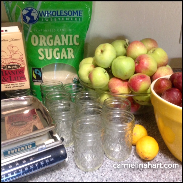 Step 1 – The first thing you need to do is obtain the fruit. For this recipe, we have used a combination of plums and apples. I’m sure you can use almost any firm juicy fruit. Really, no bananas or melons, come on. We started by trading with our neighbors, our squash for their plums and apples. Our bartering was successful, we ended up with a lot of fruit, and now ready to make jam.
