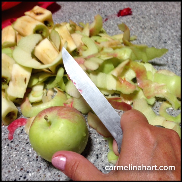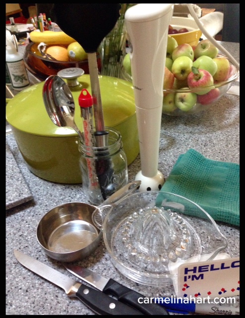 Step 3 – With your child busy with a job, you can juice the lemons and zest one lemon. Then prep the fruit. Wash, peel and core or pit whatever fruit you were able to pick, buy or trade. This job, because it involves a knife, may be best for an adult. Prepping takes some time and can be booor-rring!