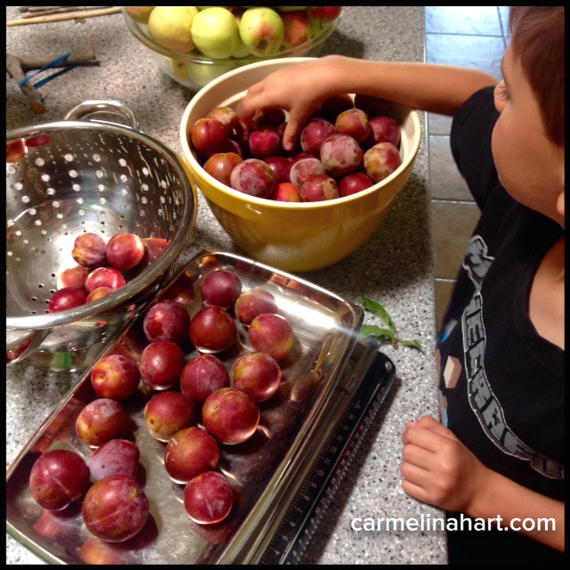 Step 2 – Sort and weigh the fruit. This is a perfect job for your young assistant. Azul loved it.
