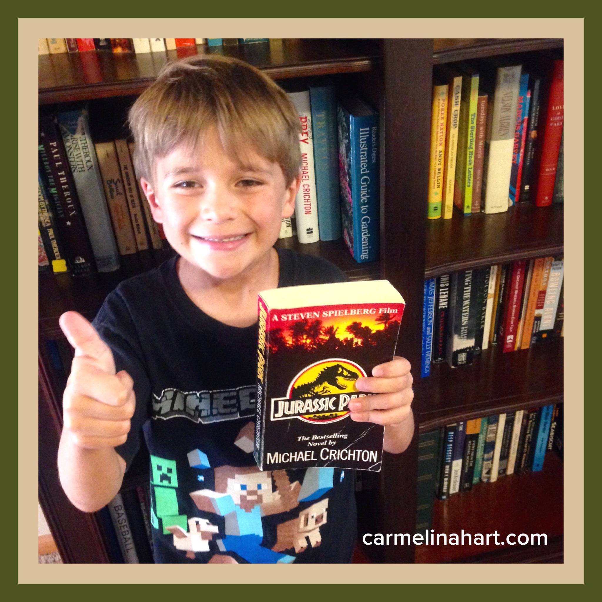 “You know how I wanted to know about Jurassic Park? Look what I found,” Azul excitedly said while holding on to his new discovery of an old copy of the Michael Crichton book. I forgot I had the book and remembered even less of the book than I did the movie. In his enraptured state, I promised we would start reading the book that evening. We usually we read two books a night, first he reads to me and then I read a chapter or two of a more advanced book to him.