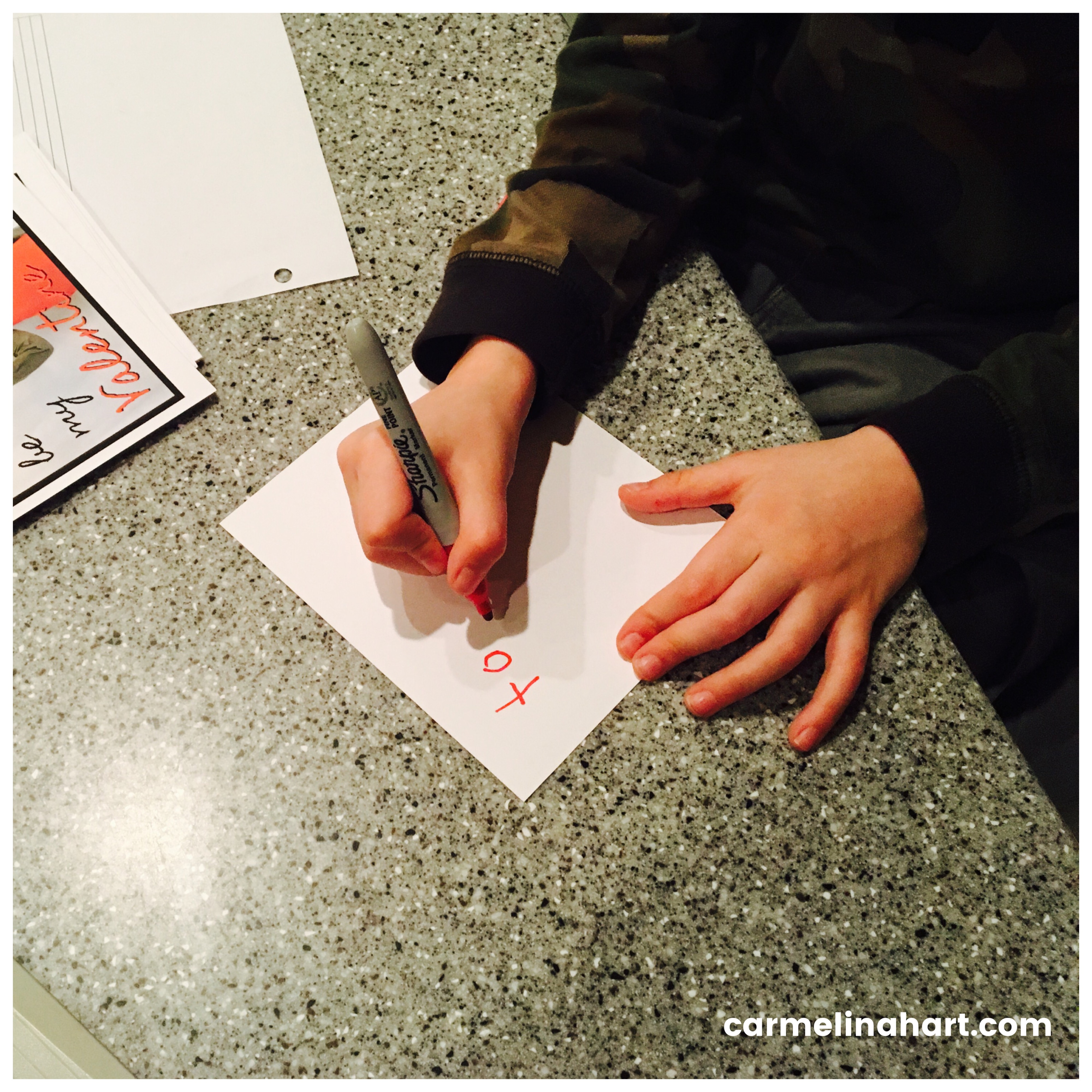 Step 4) He wrote the names of each of his friends in class, on the back of the cards.