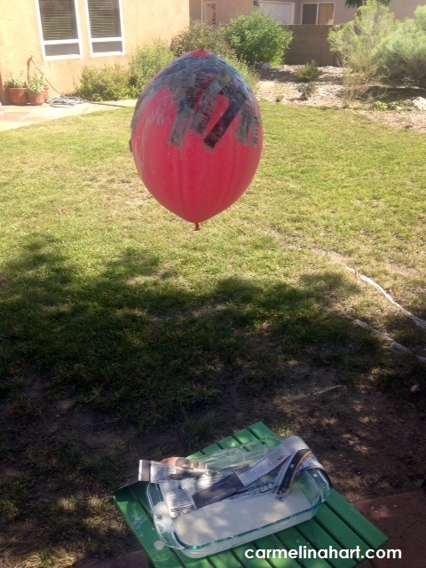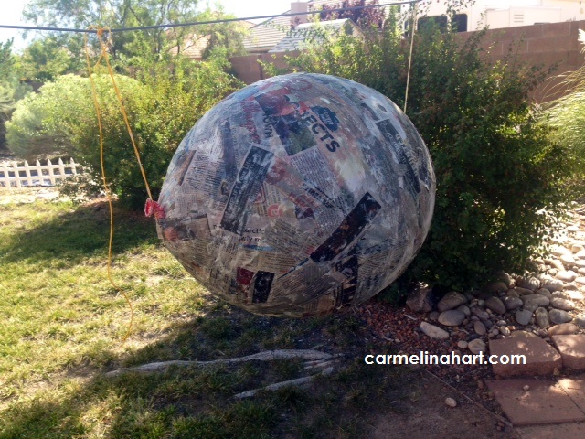 Step # 5 – Let it dry. Completely! Then pop the balloon. It might just pop by itself and scare the piñata stuffing out of you!