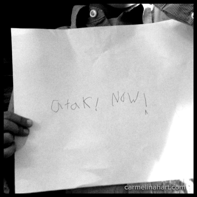Azul, my six year-old, spoke not a word to me as he held up his hand written sign. I looked at it trying to figure out what it was saying and then I carefully read it aloud.